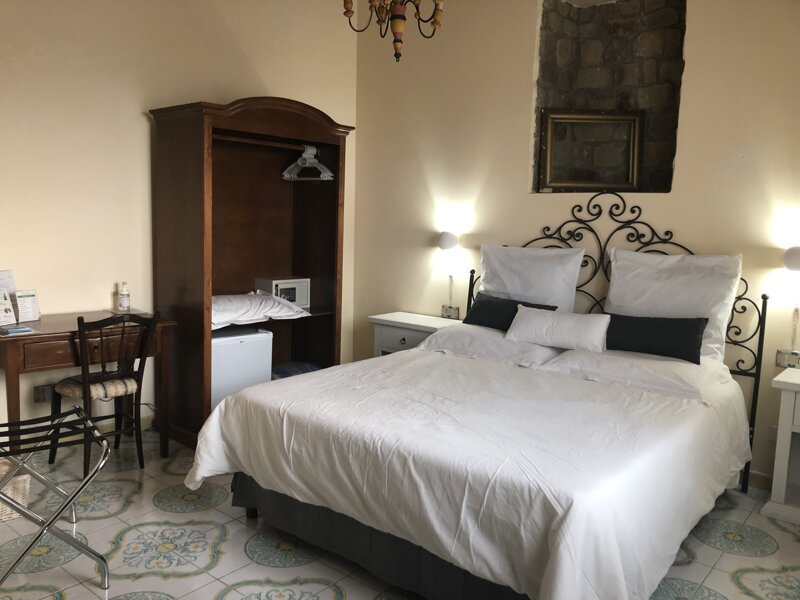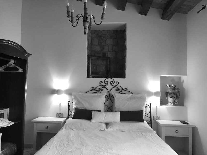 Nella camera troverete una importante testa di regina di un famoso artista ceramista di Caltagirone, una scrivania dell’800 intarsiata e una antica finestra a cornice dello specchio.